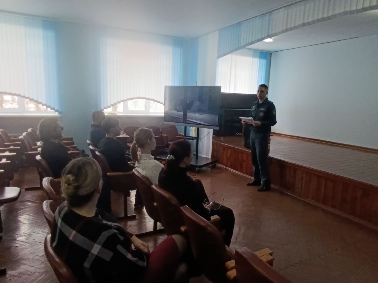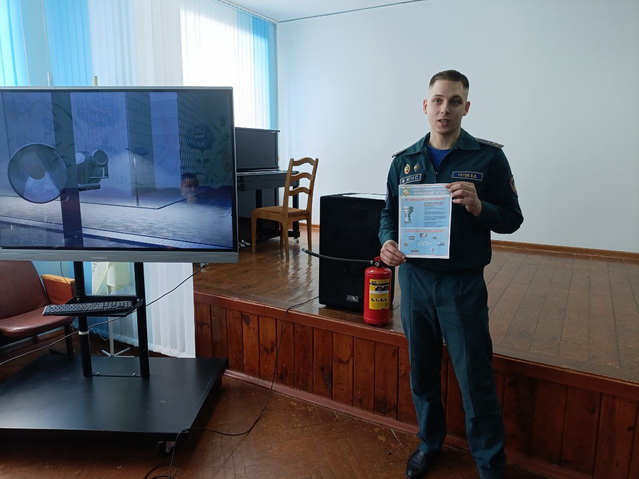 04 марта в ГУО «Лопатинская средняя школа» прошло мероприятие, посвящённое правилам действий при чрезвычайных ситуациях, в частности при звуке сигнала «Внимание всем!». В ходе мероприятия сотрудники МЧС рассказали педагогическим работникам о важности правильного реагирования на предупредительные сигналы, о необходимости включать радиоприемник или телевизор для получения актуальной информации, а также о выполнении всех рекомендаций специалистов. Особое внимание было уделено тому, как без паники помочь пострадавшим, детям и пожилым людям, и как передавать информацию соседям. Целью мероприятия стало повышение готовности педагогического коллектива к действиям в чрезвычайных ситуациях и формирование ответственного подхода к безопасности школьного сообщества.